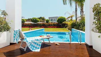 Princess Andriana Resort & Spa tilbyr hyggelige dobbeltrom, dublettrom, samt juniorsuiter. For en ekstra luksusfølelse bestiller du et rom med direkte utgang basseng, eller privat basseng.