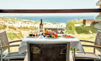Rolig hotellområde utenfor liten by, med lokaltrafikk. Ca. 600 meter fra hotellet er det et lokalt, lite sentrum der du finner et par restauranter, et par butikker, et apotek og en minibank. Du må krysse en vei for å komme til stranden fra hotellet. Trapper og nivåforskjeller i området. I Lardos, ca. 8 km fra hotellet er det større utvalg.