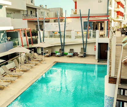 Semiramis har et lite bassengområde hvor du kan ta avkjølende bad eller slappe av på en solseng.