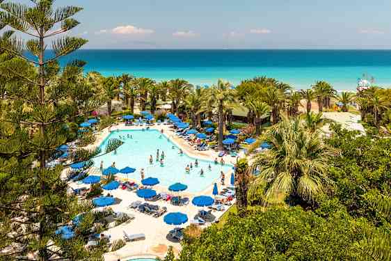 Blue Horizon Hotel ligger idyllisk til på stranden i Ialyssos på Rhodos vestkyst. Hotellet har en stor, vakker hage med et innbydende bassengområde, og for deg som foretrekker å bade i havet ligger stranden i gangavstand. For hotellets yngste gjester finnes barnebasseng, lekeplass og spillrom. Hotellets aktivitetsverter arrangerer også ulike barneaktiviteter og musikkopptredener. Liker du å røre på deg, finnes det alt fra tennis og basket til volleyball og yoga. Er det avkobling som frister, tilbys massasje på bassengområdet.