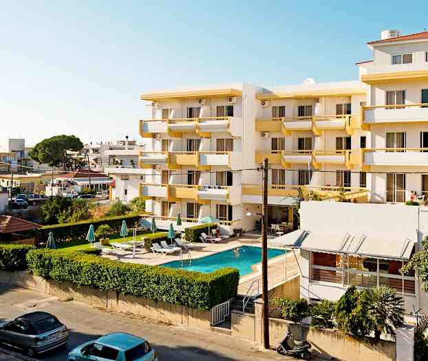 Trianta Hotel Apartments er et enkelt, familieeid leilighetshotell i rolige omgivelser. Hotellet ligger i Ialyssos på Rhodos vestkyst, en litt lenger gåtur til stranden og rundt 15 minutters taxitur til Rhodos by.
