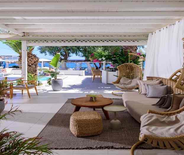 Alesahne Beach Hotel et koselig, sjarmerende strandhotell i Kamari, Santorini. Alesahne Beach Hotel ligger ved den vakre Kamari stranden og tilbyr et avslappende miljø og moderne, elegante designerrom. Hotellet ligger i landsbyen Kamari, 50 meter fra den svarte sandstranden, 6 kilometer fra Santorini Thira nasjonale flyplass og 12 kilometer fra et badeland.