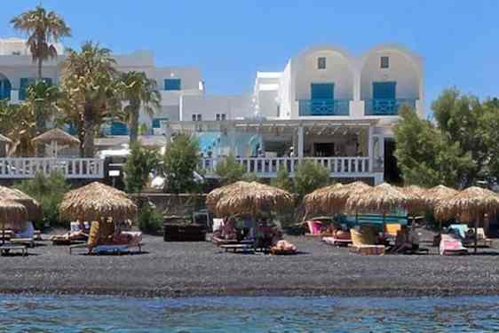 Når du har Kamari Beach Hotel i Santorini som overnattingssted, bor du på stranden, kun 1 minutter å kjøre fra Kamari strand og 6 minutter fra Gamle Thira. Dette hotellet ved stranden ligger 6,1 mi (9,8 km) unna Athinios havn og 4,9 mi (8 km) unna Santorinikalderaen.