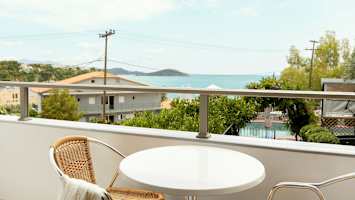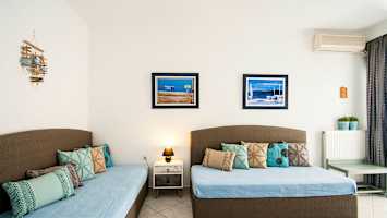 Megali Ammos-stranden har grovkornet sand. Her er det solsenger til leie, vannsport og spisesteder.