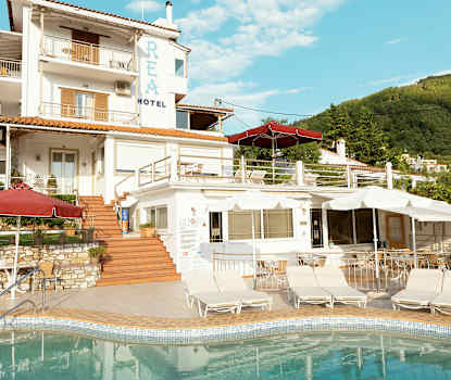 Ca. 1 kilometer utenfor Skiathos by ligger Megali Ammos-stranden. Megali Ammos betyr noe slikt som "den store stranden". Det stemmer godt, for stranden er bortimot en kilometer lang, med grovkornet sand. Stranden er barnevennlig, da det er langgrunt, og langs stranden ligger det mange tavernaer og kafeer om du skulle få lyst på en matbit. På stranden er det mulig å prøve ulike vannsporter, og å leie solsenger og parasoller i sommersesongen. I begynnelsen av sesongen fram til ca. midten av juni pågår tildelingen av lisenser for utleie av blant annet solsenger, tavernaer, strandbarer. Det kan medføre at disse fasilitetene langs strendene ikke åpner før tildelingen avsluttes.
