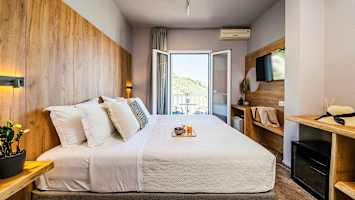 Som gjest på Skiathos Avaton Garden får du bruke bassenget på nabohotellet Skiathos Avaton Hotel (ca. 100 m). Her er det både solsenger, parasoller og en bassengbar.