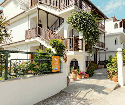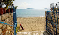 Ca. 1 kilometer utenfor Skiathos by ligger Megali Ammos-stranden. Megali Ammos betyr noe slikt som "den store stranden". Det stemmer godt, for stranden er bortimot en kilometer lang, med grovkornet sand. Stranden er barnevennlig, da det er langgrunt, og langs stranden ligger det mange tavernaer og kafeer om du skulle få lyst på en matbit. På stranden er det mulig å prøve ulike vannsporter, og å leie solsenger og parasoller i sommersesongen. I begynnelsen av sesongen fram til ca. midten av juni pågår tildelingen av lisenser for utleie av blant annet solsenger, tavernaer, strandbarer. Det kan medføre at disse fasilitetene langs strendene ikke åpner før tildelingen avsluttes.