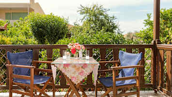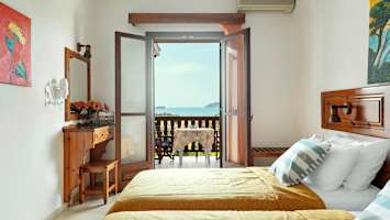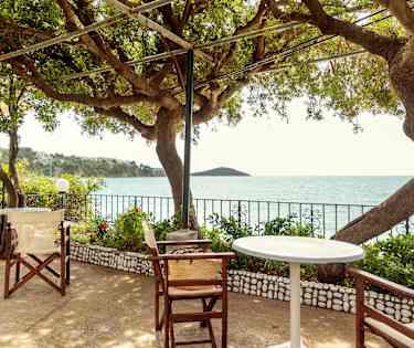 Hotellet ligger rett ved stranden, der det er solsenger til leie.