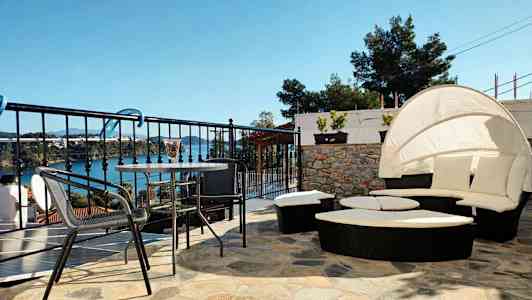 Villa Nina har komfortable leiligheter og et lite bassengområde med solsenger. Her er det også en bassengbar med servering av enkle retter. Vil du gå ut og spise, er det flere restauranter ved stranden på andre siden av hovedveien, og rusler du inn til Skiathos by, finner du enda flere spisesteder og barer i de koselige gatene.