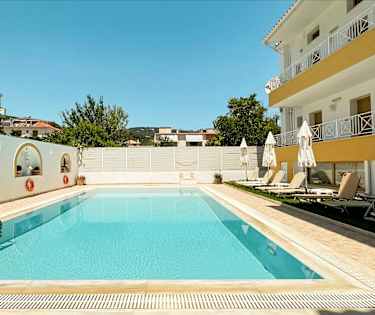 Det er ingen strender inne i Skiathos by, men enkelte gjester velger å bade ved Bourtzi-halvøya. Det er også mulig å ta turen til Siferi og Megali Ammos som ligger rett utenfor bykjernen. Siferi er en mindre strand der det ligger et par spisesteder og det er solsenger til leie. Megali Ammos er en lengre, grovkornet sandstrand der det er et godt utvalg av tavernaer og kafeer. I begynnelsen av sesongen, fram til midten av juni, pågår tildeling av lisenser for utleie av blant annet solsenger, strandbarer og tavernaer. Dette kan medføre at disse fasilitetene ikke er tilgjengelige på stranden før tildelingen er avsluttet.