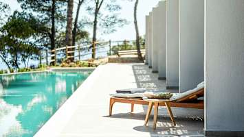 Elivi er et stilfullt designhotell hvor moderne arkitektur smelter sammen med naturen. Beliggende på Vestre Skiathos, omgitt av olivenlunder og noen av øyas vakreste strender, tilbyr hotellet en førsteklasses ferieopplevelse. Her bor du i elegante rom og suiter, noen med privat basseng. Du kan slappe totalt av ved hotellets eksklusive bassengområde eller i den luksuriøse spaavdelingen med hamam, badstue og massasje. Vil du holde deg aktiv er det et lite treningsrom, tennis- og basketballbane samt mulighet til å delta på gruppetimer på hotellet. På stranden kan du også prøve spennende vannsporter.