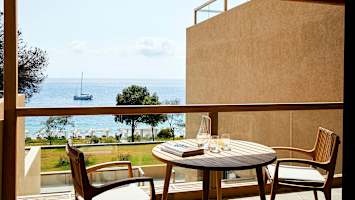 Hotellet har et generøst utvalg av restauranter og barer, hvor du kan nyte alt fra greske og italienske delikatesser til forfriskende cocktails og mocktails. På kveldstid arrangeres det jevnlig livemusikk i solnedgangen.