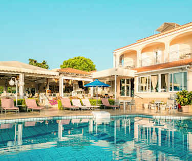 Hotellet har et koselig bassengområde med bassengbar.