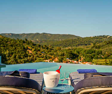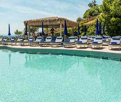 Petra Nera har et fint bassengområde med solsenger og vakker utsikt over havet. Her kan du slappe av i ferien og nyte avkjølende bad og forfriskende drikke fra bassengbaren.