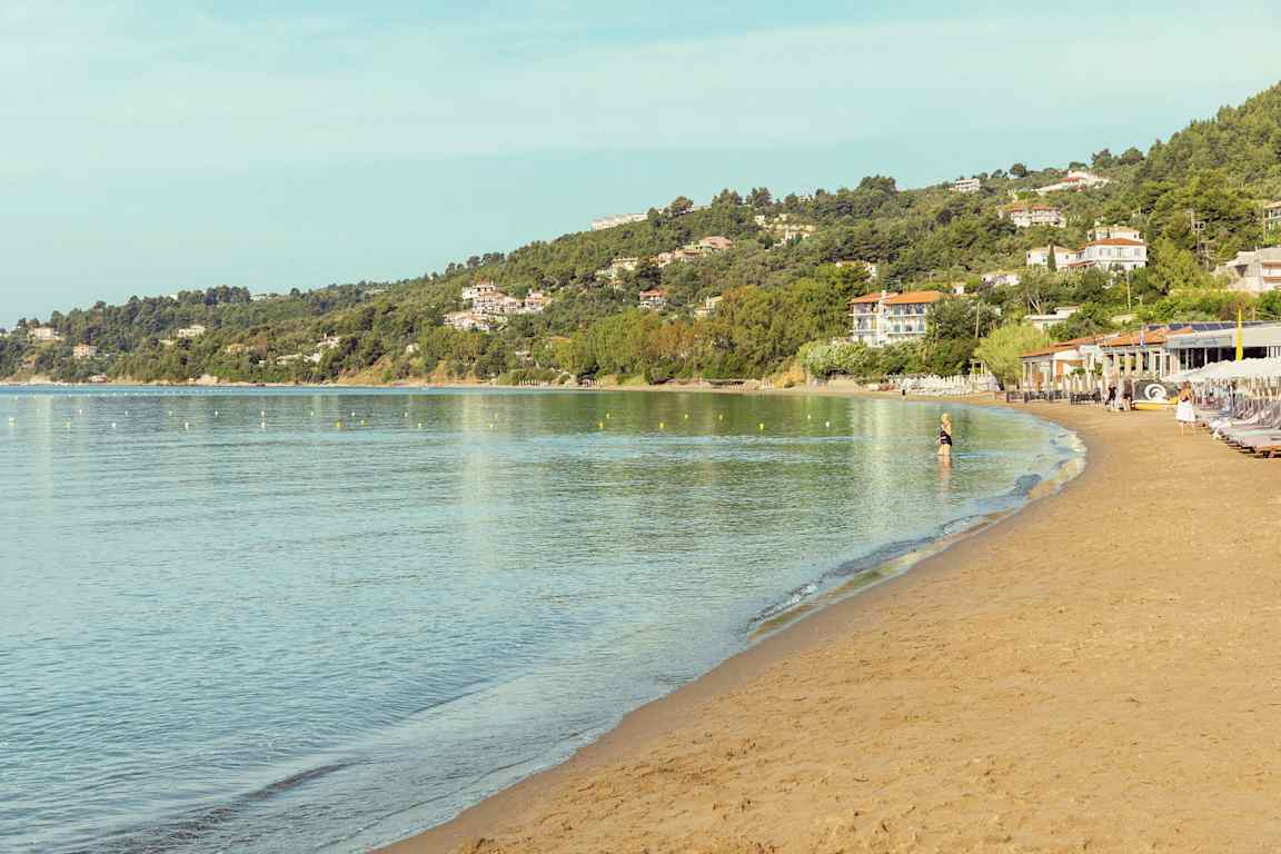 Megali Ammos er navnet på den store sandstranden like utenfor Skiathos by. Her bor du altså rett ved stranden, samtidig som det er gangavstand til restauranter, barer og butikker i Skiathos by.