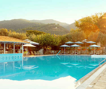 Ca. ni kilometer fra Skopelos by ligger dette lille fiskeleiet med en liten strand og en håndfull fiskerestauranter. Vi anbefaler et ettermiddagsbesøk her.Panormos – strand i vakre omgivelser