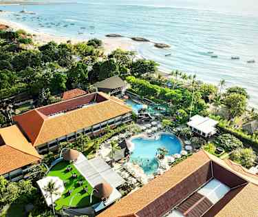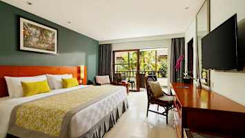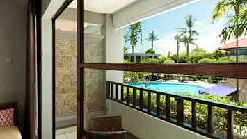 Fine rom for større selskap. Fra balkongen har du utsikt mot hotellets frodige omgivelser.