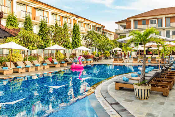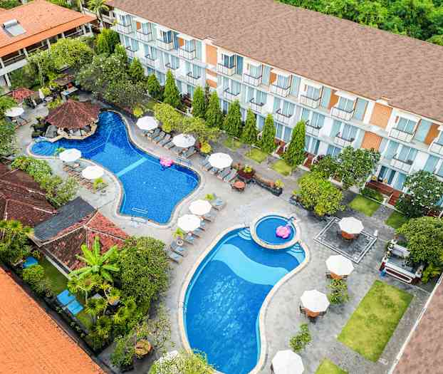På Kuta Beach Club Hotel er det rom med moderne innredning, og hotellets sentrale beliggenhet gjør at du i tillegg er nabo med Kuta Beachs uteliv, god shopping og mange restauranter.