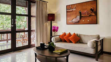 Rommene ligger i 2-etasjesbygninger og har utsikt mot hagen eller bassenget.