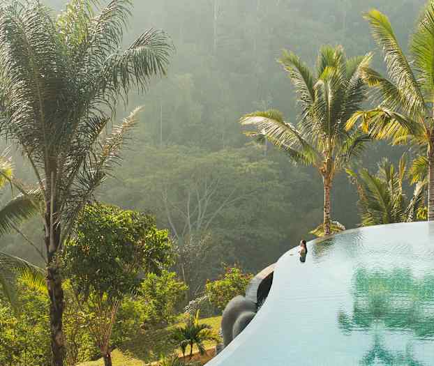 Du kan også nyte den fantastiske utsikten over jungelen fra hotellets store infinity pool. Blir du tørst i varmen, trenger du ikke engang gå ut av det herlige vannet, men kan bare svømme bort til bassengbaren. Ved bassengområdet er det masse solsenger og parasoller hvor du kan slappe av og komme i skikkelig feriestemning.