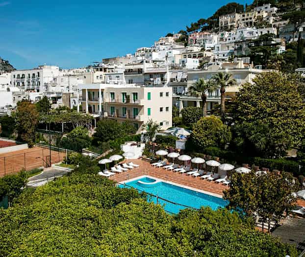I hjertet av Capri ligger hotellet Syrene, et hyggelig hotell med god service. Fra hotellet er det gangavstand til piazzettaen, restauranter og eksklusiv shopping. En lengre spasertur tar deg til strendene Spiaggia Torre Saracena og Spiaggia di Marina Piccola på Capri.