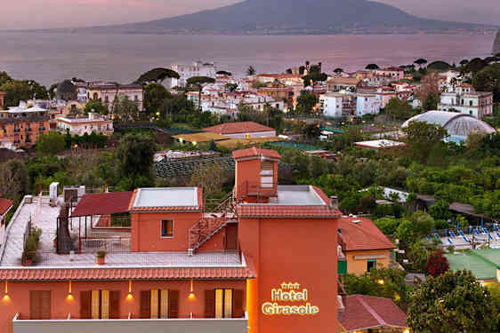 Girasole er et herlig hotell med romantisk atmosfære og vakker utsikt over Sorrentobukten og Vesuvius. Hotellet har et fint bassengområde i en stor grønn hage. Det serveres lokale retter, iskrem, sandwicher og hjemmelagede kaker i baren. Fra Girasole tar det cirka 20 minutter å gå inn til Piazza Tasso hvor du finner både restauranter og shopping.