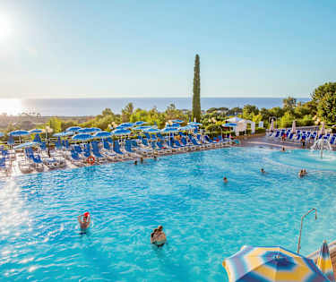 Ett bassengområde med et stort basseng. Barnebassenget ligger ved et separat bassengområde ved barneklubben. Nede ved stranden har hotellet solsenger med parasoller og her er det også en bar og en restaurant. Da det er ca. 2,5 km til stranden, har hotellet egne busser.