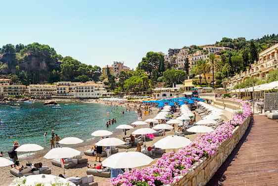 Velkommen til flotte Mazzarò Sea Palace. Dette femstjernershotellet ligger i vakre omgivelser, beskyttet mot vinden i en liten bukt, rett ved stranden. Fra hotellet er det kort gangavstand til taubanen som tar deg opp til sentrum av Taormina. Hotellet har et hyggelig bassengområde og en restaurant som ligger rett ved siden av. På terrassen er det deilige sittemøbler hvor du kan nyte både en drink og utsikten.