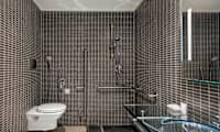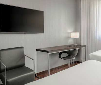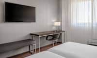 med luftkondisjonering, telefon, TV, Wi-Fi (ekstra kostnad), minibar, hårføner og baderom.