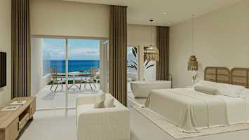 1-romsleilighet med havutsikt og direkte utgang til delt, privat basseng