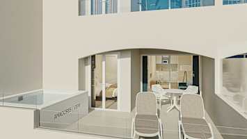 - Noen leiligheter har plunge pool på taket, med adkomst via en bratt vindeltrapp