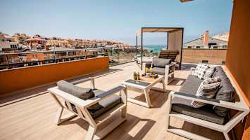 - Seks solsenger på uteplassen