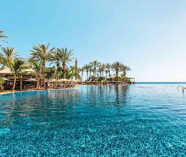 Hele hotellet er utformet for avkobling, soling og bassengkos ved et av de fire bassengene som ligger i hotellets vakre hage. Her finner du også en kunstig strand samt rikelig med solsenger og parasoller på hele området. Hotellet har et imponerende restauranttilbud med varierte temaer, og enten du foretrekker buffé eller à la carte har du flere restauranter å velge mellom. Etter middagen kan du sette deg i baren ved infinitybassenget og nyte solnedgangen og noe godt i glasset.