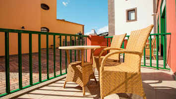 Balkongene og terrassene varierer i størrelse og utseende, og noen rom har kanarisk balkong (se bilder).