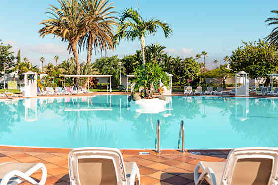 Ved hotellets innbydende og frodige bassengområde er det rolig, og her kan du slappe av og ta en avkjølende dukkert. I bassengbaren får du kjøpt enkle retter og kalde drikkevarer. Ønsker du å kjenne sand mellom tærne og de salte bølgene fra havet, tilbyr hotellet busstransport til den flotte Maspalomas-stranden og sentrum av Playa del Inglés flere ganger om dagen.