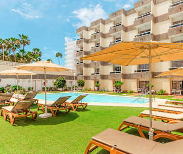 Det koselige bassengområdet er hotellets naturlige samlingspunkt, hvor du kan ta forfriskende bad og slappe av på en solseng. Hvis du foretrekker å nyte saltvann og sand mellom tærne, ligger den lange og brede stranden i Playa del Inglés ca. 500 meter unna.
