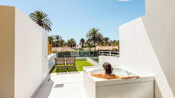 Hotellet har flere luftige bassengområder hvor du kan nyte late feriedager på en solseng. Herfra har du dessuten kort vei til havet og de gyllenbrune sanddynene som har satt Maspalomas på kartet. For deg som ikke orker å gå, tilbyr hotellet gratis busstransport til stranden.
