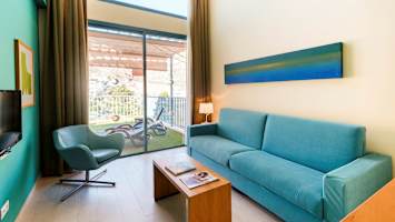 Her finner du to koselige bassengområder blant palmer og grønne vekster. Hvert av bassengområdene har et oppvarmet basseng der du kan nyte rolige stunder på en solseng og avkjølende bad. Det finnes også et lite badeland for de yngste gjestene. Ønsker du enda mer avkobling i ferien kan du besøke hotellets spa som tilbyr velgjørende behandlinger samt badstue.