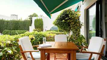 - Ligger i en separat del av hotellet, med egen inngang og privat, delt bassengområde med boblebad