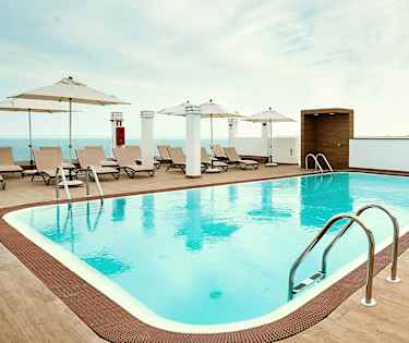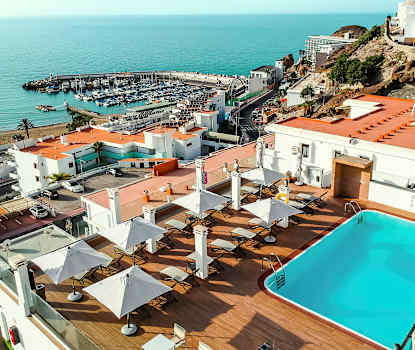 Puerto Rico har en 400 meter lang, hesteskoformet sandstrand med en molo i hver ende. Stranden er langgrunn, velstelt og består av finkornet, lys sand. Her kan du prøve deg på et ulike aktiviteter og vannsporter. Det er utleie av solsenger på stranden og langs den lile strandpromenaden ligger det flere lunsjrestauranter.