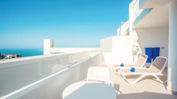 - Balkong eller terrasse (10–15 m²) med to solsenger
