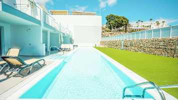 2-romsleilighet med direkte utgang til delt, privat basseng