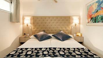 De to hotellbygningene Casamonte og Casamar er adskilt av en gate.