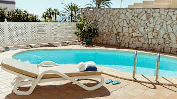 3-romsleilighet med 4 ordinære senger, i Casamonte, privat basseng, mot gaten