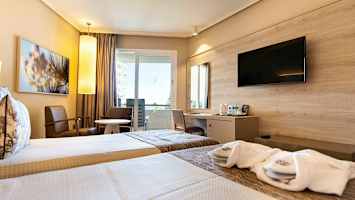 - Rommet inngår i UP!-konseptet, som inkluderer halvpensjon (frokost- og middagsbuffé) samt gratis adgang til takterrassen med basseng, solterrasse, fri bar og andre fasiliteter