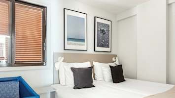 - Noen leiligheter har to etasjer. Bestemt leilighet kan ikke garanteres. Leilighetene i to etasjer har oppholdsrom nede og soverom og bad oppe. Ingen dør mellom rommene. Trappegrind til begge etasjer kan lånes i resepsjonen på forespørsel (begrenset antall)