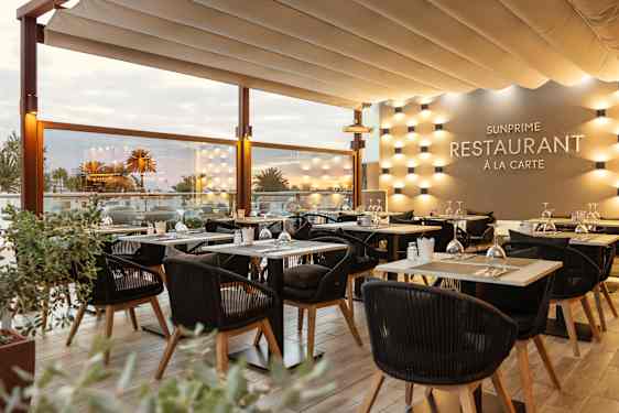 I Sunprime Restaurant får du en perfekt start på dagen med en lekker frokostbuffé. I tillegg til frokost tilbyr vi også andre praktiske måltidspakker. Vil du dra på utflukt eller spise middag på en annen restaurant uten å føle at du går glipp av noen måltider, anbefaler vi Sunprime Inclusive. I Sunprime Inclusive er lunsj og middag fem av feriedagene inkludert.