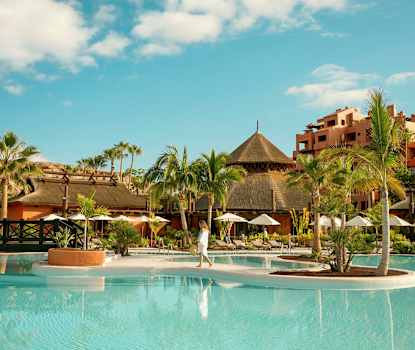 Tivoli La Caleta Tenerife Resort tilbyr flere bassengområder omgitt av frodig beplantning og vaiende palmer som skaper en fredelig atmosfære. Her kan du svømme i forfriskende basseng og slappe av på en komfortabel solseng, omgitt av duften fra tropiske blomster og kjølende vindpust. Hvert bassengområde byr på både skyggefulle og solrike plasser, perfekt for å tilpasse dagen etter dine ønsker. Ta en avkjølende dukkert, les en bok under en parasoll, eller bare nyt roen og omgivelsene.