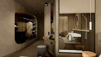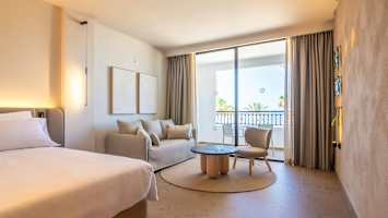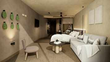 Rom og juniorsuiter innredet i jordnære farger og naturlige materialer som skaper en harmonisk atmosfære, inspirert av Tenerifes natur.