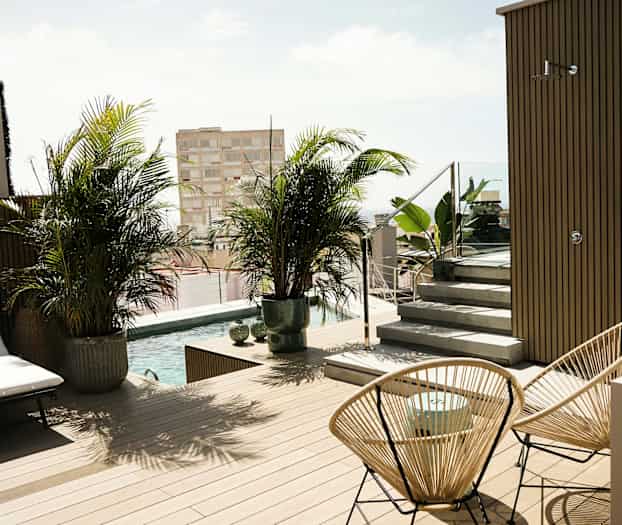 Når du kommer tilbake til hotellet etter en dag fylt med inntrykk, venter takterrassen – et av hotellets mest populære steder. Her finner du et lite basseng, boblebad og komfortable solsenger der du kan slappe av i solen eller lene deg tilbake og nyte utsikten over byen når kvelden nærmer seg. Vil du trene i ferien, har hotellet et utendørs treningsområde som gjør det enkelt å holde formen ved like.